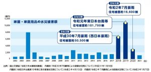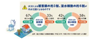 近年、集中豪雨や大規模台風による河川の氾濫(外水氾濫)や高潮、土砂崩れなどの水災による被害が増加しています。