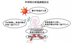 人間の身体は、平常時は体温が上がっても汗や皮膚温度が上昇することで体温が外へ逃げる仕組みとなっており、